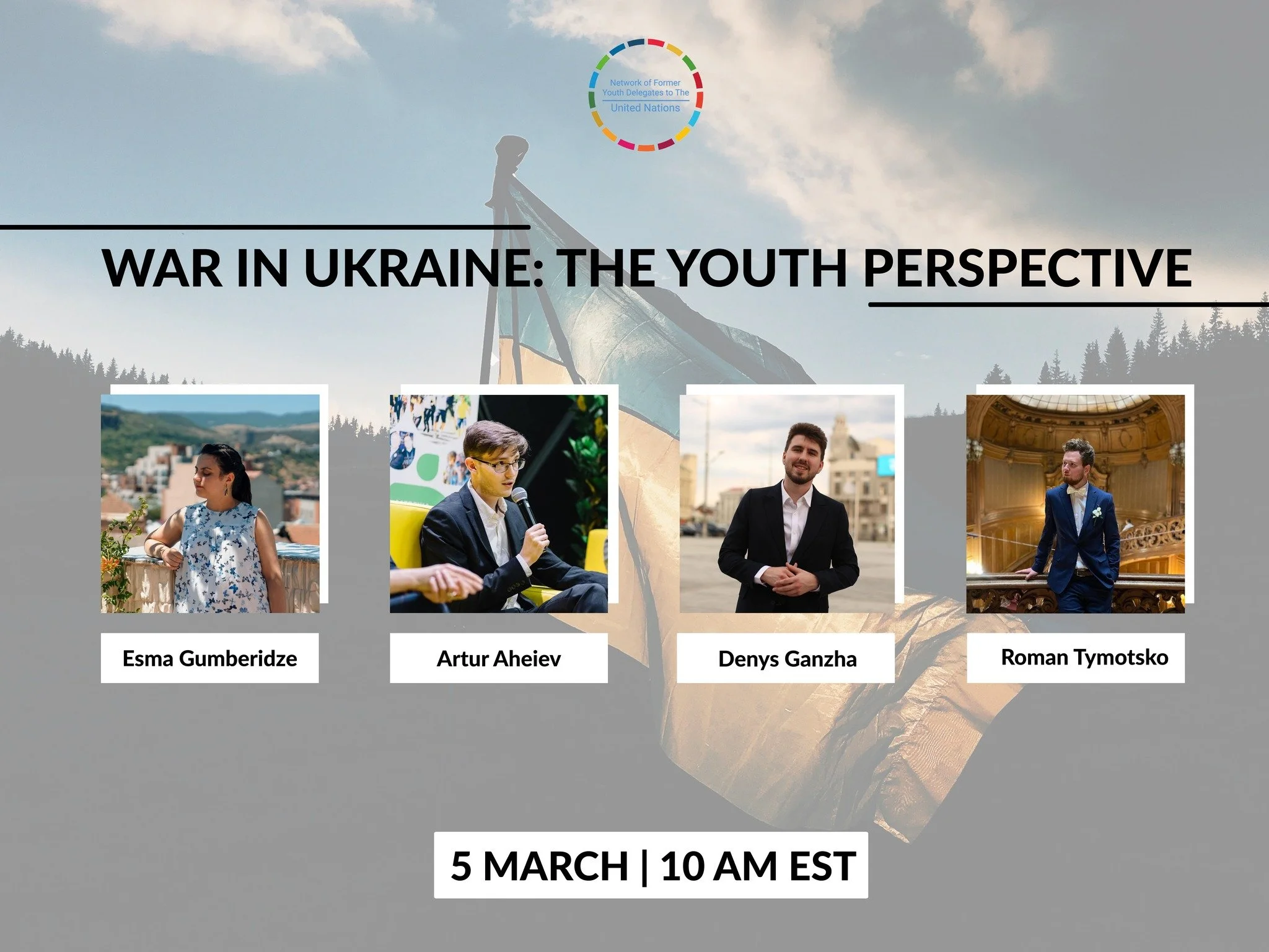 On the 5th of March, we hosted a discussion about the ongoing war in Ukraine and had a chance to hear the youth perspective, especially from the former and current Ukrainian Youth Delegates to the United Nations.